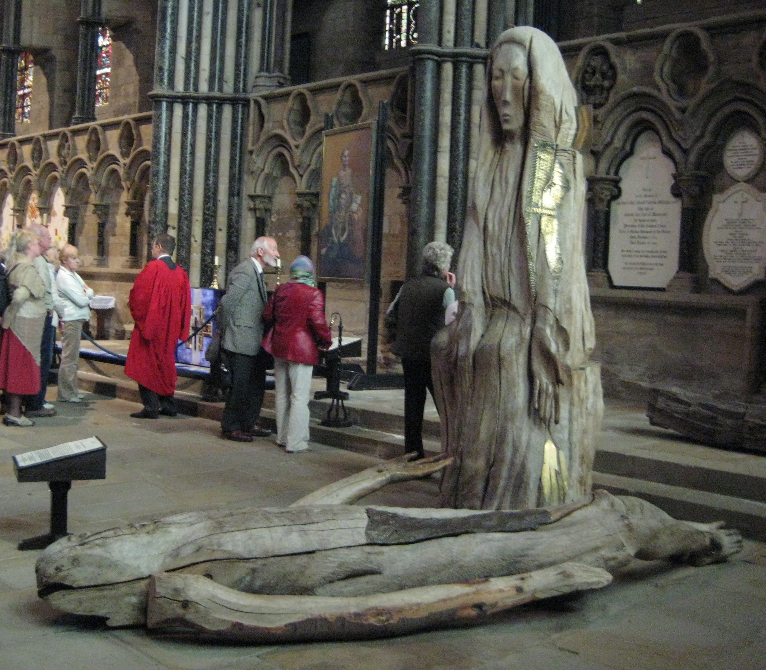 Visitors to Durham will encounter a bronze sculpture in Millennium Square, titled The Journey, by Fenwick Lawson. It depicts a group of monks carrying an open coffin containing the body of St. Cuthbert, as they fled from the island of Lindisfarne during a Viking invasion and eventually ended up in Durham towards the end of the tenth century.2